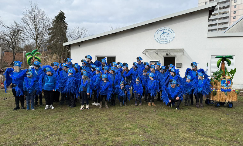 Unter dem Motto "Blu" marschierte der SV Delphin beim Forchheimer Fasenachtsumzug durch die Straßen. Auch in diesem Jahr konnten wir auf eine erfolgreiche Teilnahme zurückblicken. Als Erstes, ein ganz großes Dankeschön an das Faschings-Organisations-Team Nadine und Stephie. Ohne euren Einsatz und Ideen wäre dies nicht möglich gewesen. Mit 38 Teilnehmern, oder besser gesagt blauen Vögeln, gingen wir als Jugendfußgruppe an den Start. Auch das Wetter meinte es am Faschingssonntag gut mit uns. Nach dem Umzug ging es weiter ins Vereinsheim, wo Maultaschen und Berlinern auf uns warteten. Als Belohnung für die tolle Arbeit, erhielten wir sogar den Sonderpreis.